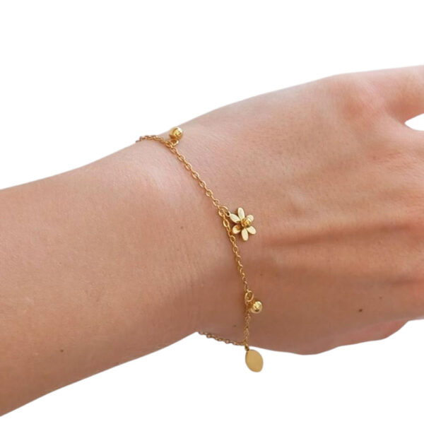 Βραχιόλι με Λουλούδι, Φύλλο & Μπίλιες – Χρυσό