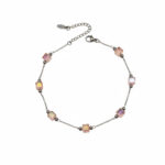 Βραχιόλι ποδιού με ροζ γυάλινες χάντρες – Ασημί