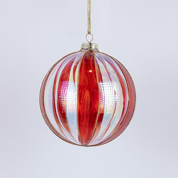 ΓΥΑΛΙΝΗ ΜΠΑΛΑ, ΔΙΑΦΑΝΗ ΙΡΙΔΙΖΟΥΣΑ ΜΕ ΚΟΚΚΙΝΟ, ΣΕΤ 2ΤΜΧ, 12cm Eurolamp