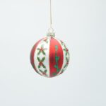 ΓΥΑΛΙΝΗ ΜΠΑΛΑ, ΛΕΥΚΗ ΜΕ ΚΟΚΚΙΝΟ ΚΑΙ ΣΧΕΔΙΑ ΓΚΙ, ΣΕΤ 4ΤΜΧ, 8cm Eurolamp
