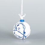 ΓΥΑΛΙΝΗ ΜΠΑΛΑ, ΛΕΥΚΗ ΜΕ ΠΟΡΣΕΛΑΝΙΝΟ ΤΑΡΑΝΔΟ, ΜΕ ΜΠΛΕ ΣΧΕΔΙΑ, 1ΤΜΧ, 8cm Eurolamp