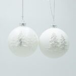 ΓΥΑΛΙΝΗ ΜΠΑΛΑ, ΛΕΥΚΗ, MAT ΚΑΙ ΓΥΑΛΙΣΤΕΡΗ, ΜΕ 3D ΔΕΝΤΡΑΚΙΑ, ΣΕΤ 4ΤΜΧ, 10cm Eurolamp