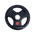 Δίσκος-πιάτο βάρους γυμναστικής με ελαστική αντιολισθητική επένδυση και εργονομικές λαβές, ιδανικό για χρήση πάνω σε μπάρα άρσης ή ως ελεύθερο βάρος σε πολλαπλές ασκήσεις.