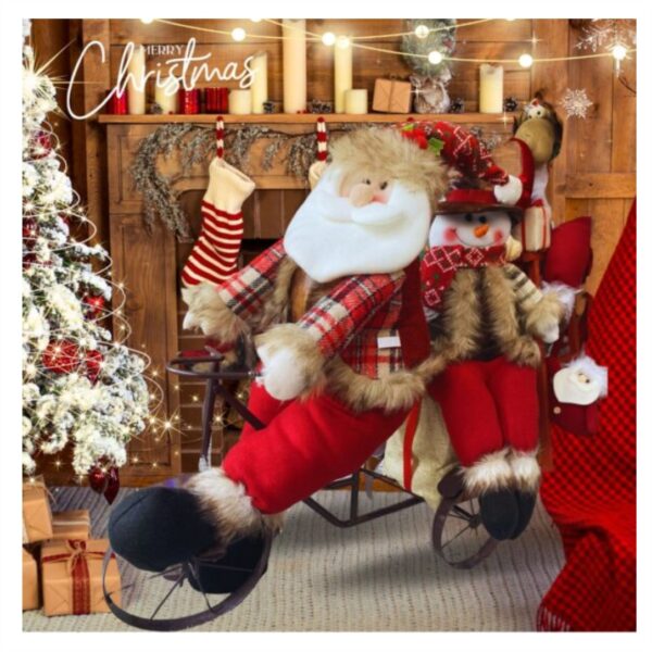 Χριστουγεννιάτικο διακοσμητικό ποδήλατο Άγιος Βασίλης – Χιονάνθρωπος. Τα διακοσμητικό ποδήλατο έχει διάσταση 50x70cm. Ιδανικό για να το τοποθετήσετε στον χώρο σας ή δίπλα στο δέντρο σας.