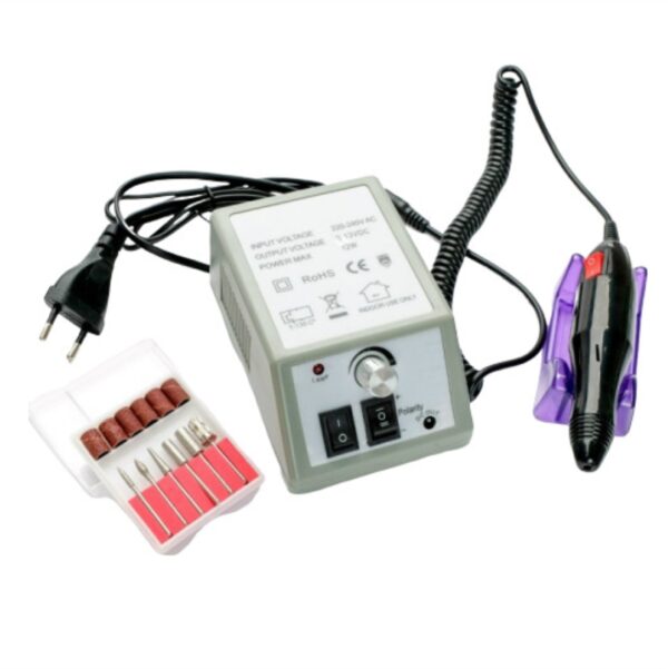 Επαγγελματικός τροχός νυχιών για μανικιούρ-πεντικιούρ. Διαθέτει 6 διαφορετικές κεφαλές. Αφαιρεί το gel, το βερνίκι νυχιών ή τα πετσάκια. Διαστάσεις 13.5x9x7cm. Ισχύς 12W. Στροφές 0-20000PRM. Διαθέτει διακόπτη On/Off. Διαθέτει διακόπτη ρύθμισης ταχύτητας.