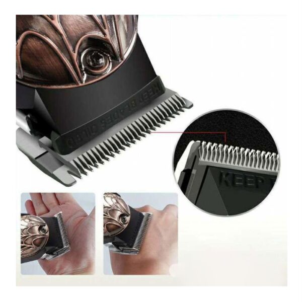 Επαναφορτιζόμενη κουρευτική μηχανή. Kατάλληλη για χρήση σε περιοχές όπως τα μαλλιά, τα γενιά και το σώμα. Λειτουργεί με μπαταρία 2000mAh. Χρόνος πλήρης φόρτισης 4 ώρες. Αυτονομία 200 λεπτά. Περιλαμβάνει φορτιστή. Διαθέτει 6 χτενάκια για διαφορετικά μήκη κοπής 1.5/3/4.5/6/10/13mm. Διαστάσεις 17x4cm.