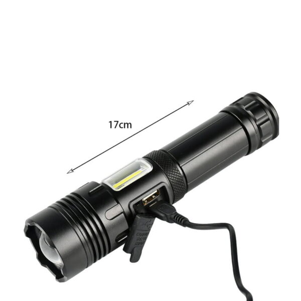 Φακός χειρός κατάλληλος για χρήση σε δραστηριότητες όπως κατασκήνωση, πεζοπορία, ποδηλασία, κυνήγι, ψάρεμα ή κατά διάρκεια των εργασιών όπως επισκευή στο σπίτι. Είναι επαναφορτιζόμενος και τροφοδοτείται μέσω της θύρας USB. Επίσης, έχει ενσωματωμένο δεύτερο πλευρικό φως. Έχει μήκος 17cm.