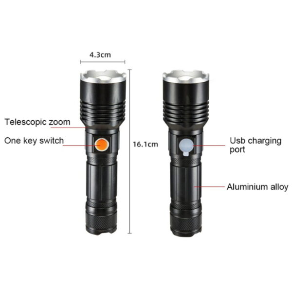 Επαναφορτιζόμενος φακός XH-P50 BX-P07 1500 lumens – Glare flashlight