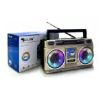 Φορητό ραδιόφωνο με φωτισμό LED, που προσφέρει υψηλή ποιότητα ήχου χάρη στα στερεοφωνικά ηχεία του ενώ η πτυσσόμενη κεραία του, παρέχει σταθερό ραδιοφωνικό σήμα. Μπορείτε να πάρετε την αγαπημένη σας μουσική παντού, καθώς είναι πρακτικό και εύκολο στη μεταφορά.