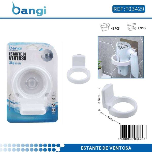 Επιτοίχια βάση για πιστολάκι μαλλιών, από υψηλής ανθεκτικότητας πλαστικό υλικό, με πρακτικό σχεδιασμό και εύκολη τοποθέτηση με ισχυρή βεντούζα χωρίς την απαίτηση βιδών.