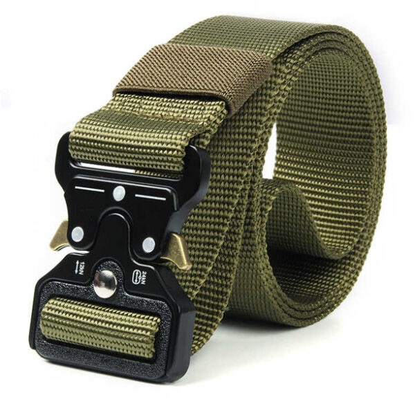 Ζώνη στρατιωτικού τύπου, εξαιρετικής αντοχής με μεταλλική πόρπη ταχείας απασφάλισης.