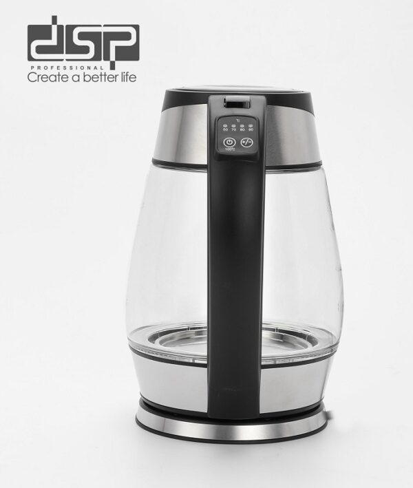 Ηλεκτρικός βραστήρας της DSP, υψηλής ισχύος και άμεσης θέρμανσης, με πρακτικό διαφανή σχεδιασμό και δυνατότητα επιλογής θερμοκρασίας.