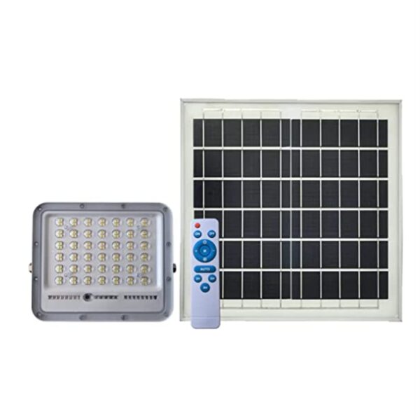Ηλιακός προβολέας Led. Ιδανικός για ένα ασφαλέστερο νυχτερινό περιβάλλον. Έχει υψηλή φωτεινότητα και μεγάλη διάρκεια ζωής. Ισχύς 300W. Φωτεινότητα 6500Κ. Αδιαβροχοποίηση IP67. Διαθέτει χειριστήριο και πάνελ. Διαστάσεις προβολέα 37×27.5×5.5cm. Με πλήρη φόρτιση λειτουργεί περίπου12 ώρες, ανάλογα με την επιλογή προγράμματος.