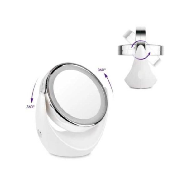 Στρογγυλός καθρέφτης μακιγιάζ με Led και ανεμιστήρα. Διαθέτει 2 πλήκτρα για το φωτός και τον ανεμιστήρα. Με βάση στήριξης. Ιδανικό για ένα υπέροχο μακιγιάζ. Διαστάσεις 23x20cm.