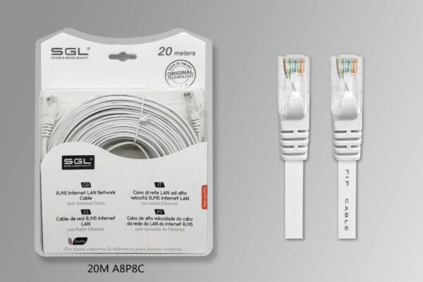 Καλώδιο δικτύου Ethernet, πλακέ, λευκό, μήκους 20m.