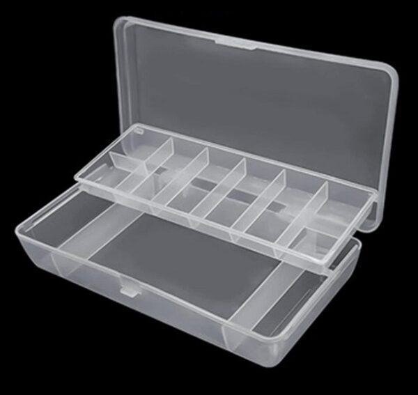 Πλαστικό κουτί-κασετίνα, ιδανικό για την αποθήκευση και μεταφορά των αξεσουάρ αλιείας σας, με πολλαπλές θήκες και διαχωριστικά. Διαστάσεις: 20x10x5cm