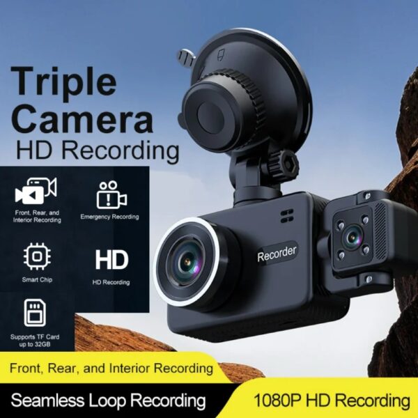 Καταγραφικό αυτοκινήτου με τριπλή κάμερα, υψηλή ανάλυση και πολλαπλές λειτουργίες.