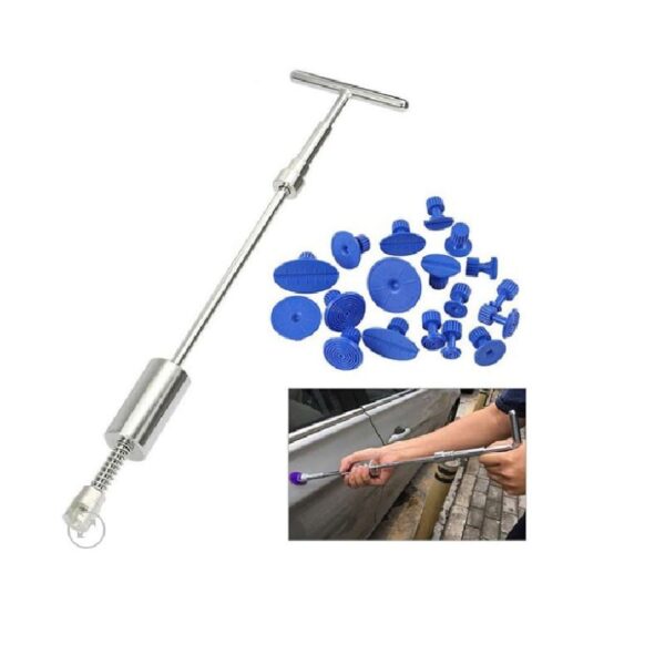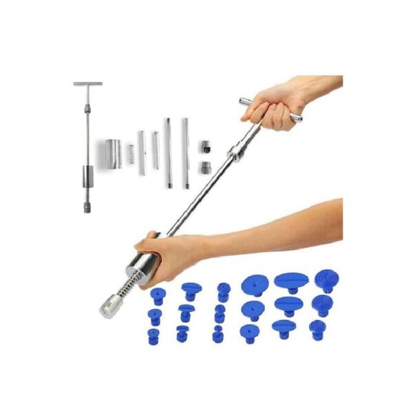 Χάρη στο πλήρες σύστημα αφαίρεσης βαθουλωμάτων, μπορείτε να επισκευάσετε μόνοι σας το αμάξωμα του αυτοκινήτου σας, διορθώνοντας όλα τα μικρά βαθουλώματα από αυτό. Ένα μεταλλικό σφυρί ολίσθησης και ένα σετ εναλλάξιμων προσαρμογέων διαφορετικών διαμέτρων, θα σας επιτρέψουν να επισκευάσετε μόνοι σας το σημείο που επιθυμείτε. Σας επιτρέπει να διορθώσετε βαθουλώματα από ένα μεταλλικό σώμα χωρίς να χρειαστεί να το βάψετε μετά.