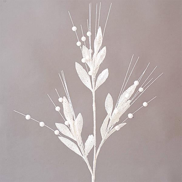 ΚΛΑΔΙ ΜΕ ΦΥΛΛΑ ΚΑΙ ΛΕΥΚΑ ΔΙΑΚΟΣΜΗΤΙΚΑ, ΜΕ GLITTER, 72cm Eurolamp