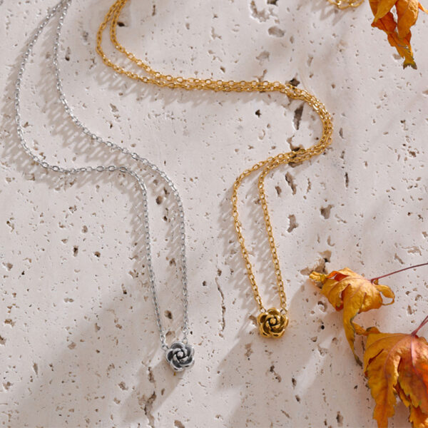 Κολιέ Ατσάλι με Μικρό Τριαντάφυλλο – Χρυσό