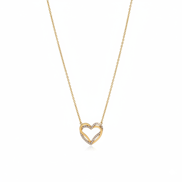 Κολιέ Διπλή Καρδιά με Ζιργκόν από Ατσάλι – Χρυσό