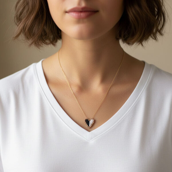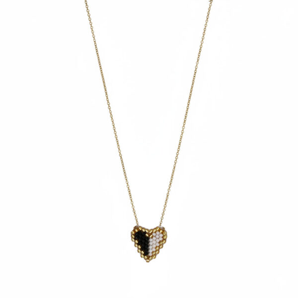 Κολιέ Καρδιά Miyuki Δίχρωμη από Ατσάλι – Μαύρο