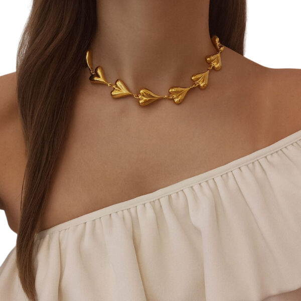 Ατσάλινο κολιέ με διαδοχικά μοτίφ καρδιάς σε χρυσή ή ασημί απόχρωση. Ένα ρομαντικό και κομψό σχέδιο που συνδυάζει θηλυκότητα και στυλ, ιδανικό για κάθε περίσταση. Φοριέται μόνο του ή σε layering με άλλα κολιέ για πιο εντυπωσιακό αποτέλεσμα.