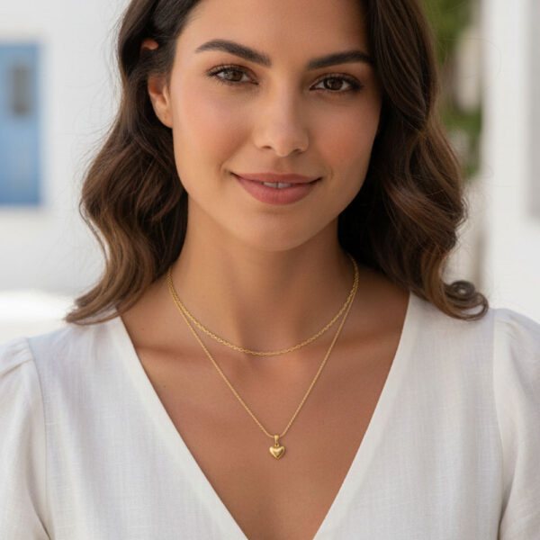 Κολιέ με διπλή αλυσίδα και καρδιά – Ασημί