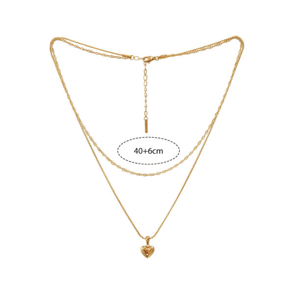 Ατσάλινο κολιέ με δύο λεπτές αλυσίδες σε χρυσό ή ασημί χρώμα και κρεμαστό μοτίφ σε σχήμα καρδιάς. Ένα ρομαντικό και διαχρονικό σχέδιο που χαρίζει θηλυκότητα και κομψότητα σε κάθε εμφάνιση. Μήκος αλυσίδας 40+6cm για άνετη εφαρμογή.