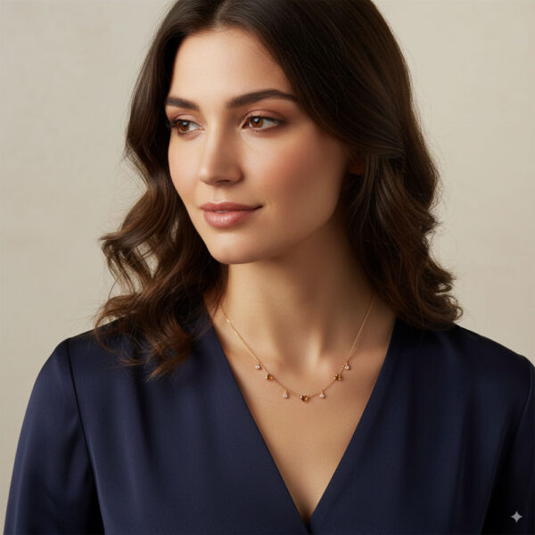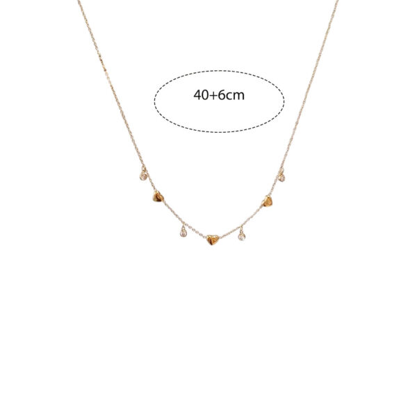 Ατσάλινο κολιέ με λεπτή αλυσίδα και κρεμαστά διακοσμητικά: τρεις μικρές καρδιές και λαμπερά ζιργκόν που χαρίζουν διακριτική λάμψη. Ένα ρομαντικό και κομψό σχέδιο που ταιριάζει σε κάθε εμφάνιση. Μήκος αλυσίδας 40+6cm για άνετη εφαρμογή.