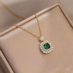 Κολιέ Με Κρεμαστή Τετράγωνη Ροζέτα Και Πέτρα Ζιργκόν – Χρυσό Πράσινο