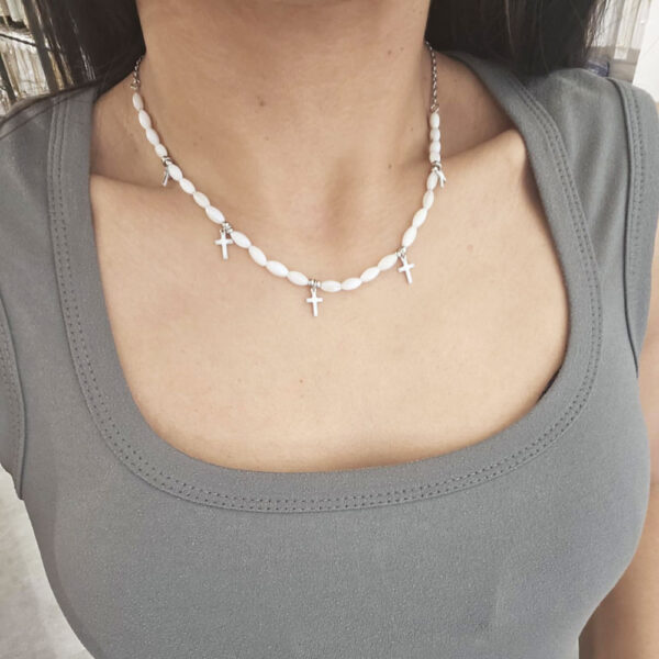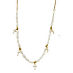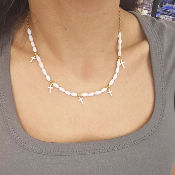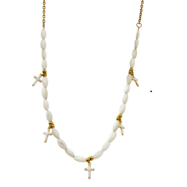 Κολιέ Με Πέτρες Και Μικρούς Σταυρούς Απο Ανοξείδωτο Ατσάλι – Χρυσό