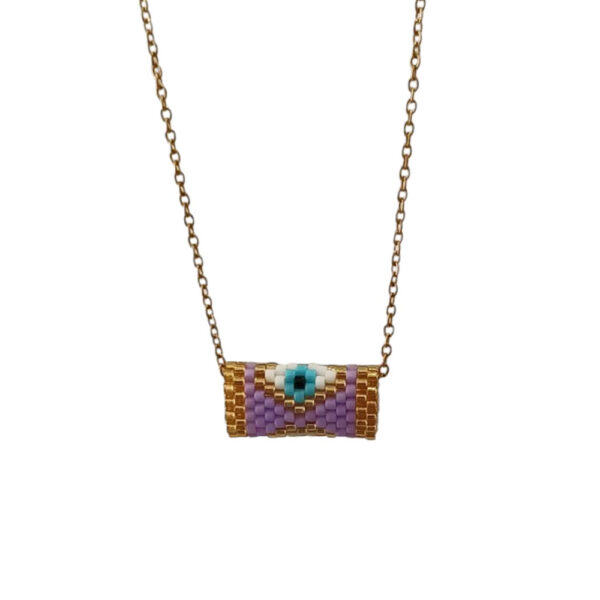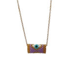 Κολιέ με σχέδιο ματάκι & αλυσίδα – Μωβ