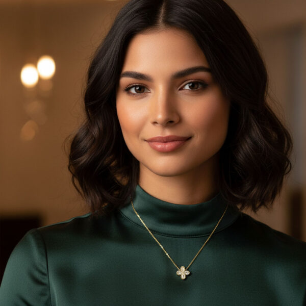 Λεπτό και κομψό κολιέ με μοτίφ τετράφυλλο, διακοσμημένο με λαμπερά ζιργκόν που αντανακλούν το φως μοναδικά. Φοριέται καθημερινά αλλά και σε πιο ιδιαίτερες στιγμές, χαρίζοντας διακριτική λάμψη και θηλυκότητα.Ιδανικό για layering ή για minimal εμφάνιση.Μέγεθος μοτίφ: ~1 cmΜήκος αλυσίδας: 40 + 6 cm
