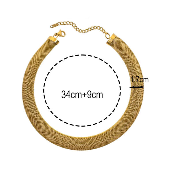 Κολιέ τσόκερ ατσάλινο με πλακέ πλεκτή αλυσίδα σε χρυσό ή ασημί χρώμα.