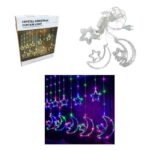 Κουρτίνα Φωτάκια Χριστουγέννων με Αστέρια και Φεγγάρια Πολύχρωμο Χρώμα 10L 3M– Crystal Christmas Curtain Light with Stars & Moons RGB light