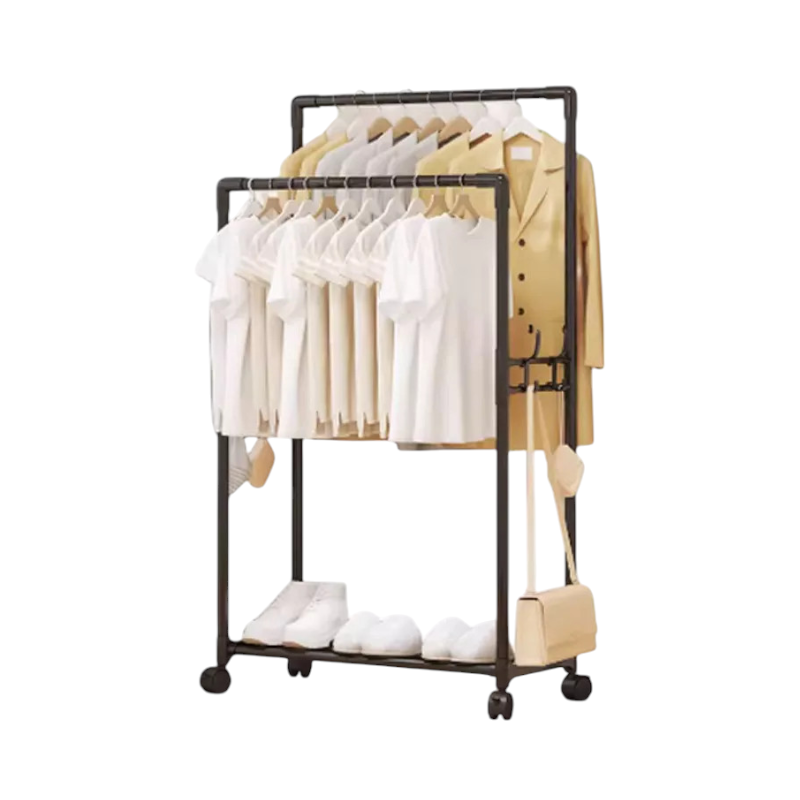 Kρεμάστρα δαπέδου μονή, μεταλλική, με ράφι παπουτσιών και πλαϊνές κρεμάστρες, ιδανική ως έπιπλο εισόδου ή για την οργάνωση των ρούχων στο δωμάτιό σας.