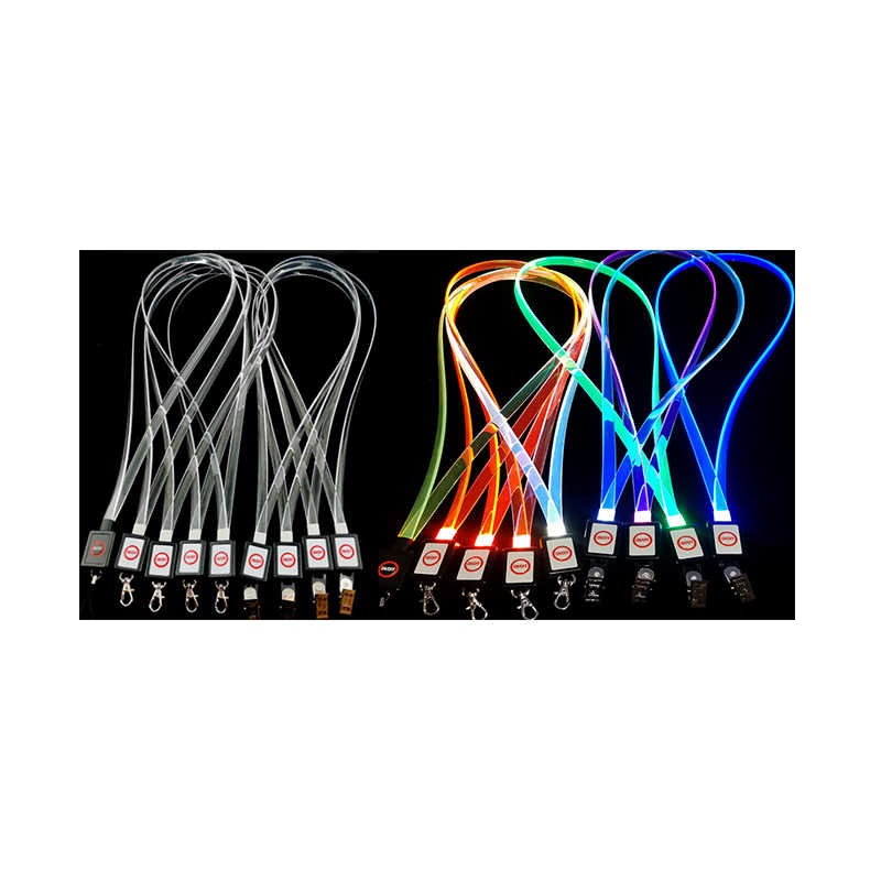 Κρεμαστό λουρί λαιμού για κλειδιά, Smartphone κτλ. με εντυπωσιακό φωτισμό LED. Κατασκευασμένο από πλαστική διάφανη ίνα και βάση/χειριστήριο LED με πλήκτρο On/Off που φωτίζει ολόκληρο το λουρί σε ποικιλία χρωμάτων. Περίμετρος λουριού: 80cm, Μήκος: 40cm, Διάμετρος ίνας: 2.8mm, Διαστάσεις χειριστηρίου: 3.4 x 2.6 x 1.4cm.