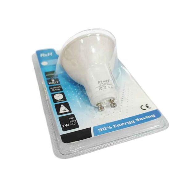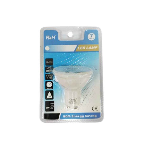 Λάμπα LED τύπου GU10 ισχύος 7W, ιδανική για spot φωτισμό σε οικιακούς και επαγγελματικούς χώρους. Παρέχει έντονο και καθαρό φως με εξοικονόμηση ενέργειας έως 90%. Διαθέτει μεγάλη διάρκεια ζωής και υψηλή απόδοση φωτισμού.