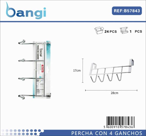 Μεταλλική κρεμάστρα πόρτας 4 θέσεων – 57843