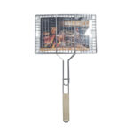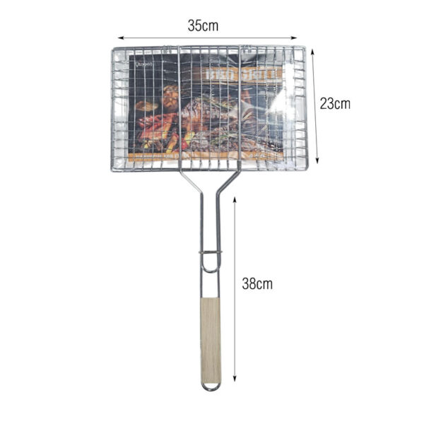 Μεταλλική Σχάρα Ψησίματος με Ξύλινη Λαβή 35×23cm – Metal BBQ Grill Basket with Wooden Handle