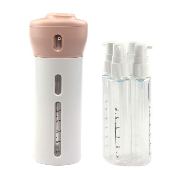 Σετ ταξιδιού 4 μπουκαλάκια σπρέι με περιστρεφόμενο δοχείο. Το δοχείο είναι περιστρεφόμενο και διαθέτει 4 περιστροφές για να μπορείτε να χρησιμοποιείτε όποιο μπουκαλάκι επιθυμείτε.