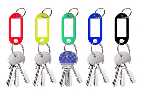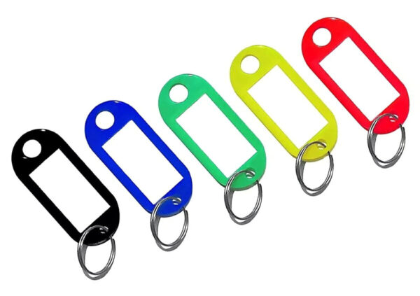 Μπρελόκ με ετικέτα, ιδανικά για την σήμανση των κλειδιών σας. Η συσκευασία περιλαμβάνει 100 μπρελόκ με ετικέτα σε διάφορα χρώματα.