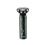 Ξυριστική μηχανή προσώπου της εταιρείας Kemei με τρεις περιστροφικές λεπίδες για βαθύ ξύρισμα. Είναι κατάλληλη τόσο για βρεγμένο όσο και για στεγνό δέρμα. Μπορεί να πλυθεί με νερό για εύκολο καθαρισμό, καθώς είναι πλήρως αδιάβροχη (|ΡΧ7). Είναι φιλική προς το δέρμα σας και δεν δημιουργεί ερεθισμούς. Διαθέτει 2 κεφαλές για ξύρισµα και τριµάρισµα και 1 κεφαλή για περιποίηση των τριχών στα αυτιά, µύτη κτλ. Διαθέτει επαναφορτιζόµενη µπαταρία, λειτουργεί µε καλώδιο φόρτισης (περιλαµβάνεται) και απαιτούνται 8 ώρες για µια πλήρη φόρτιση. Με φωτεινή πράσινη ένδειξη όταν η µπαταρία είναι πλήρως φορτισµένη.