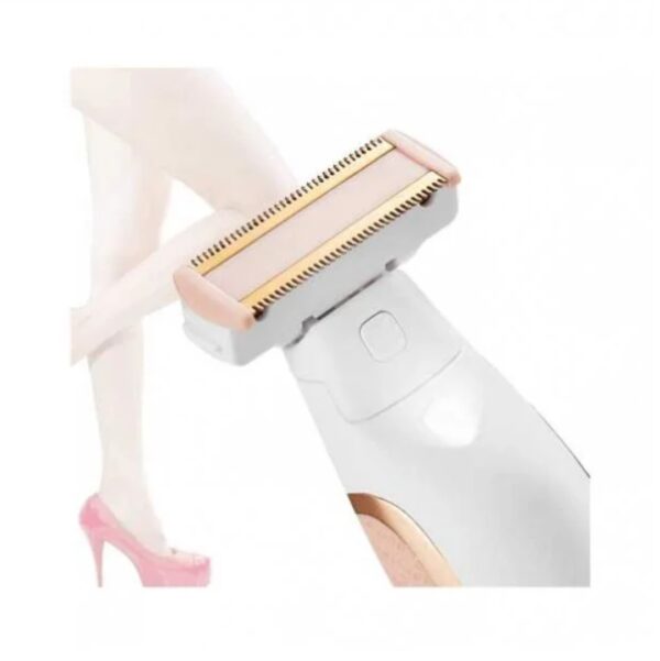 Επαναφορτιζόμενη ξυριστική μηχανή. Ιδανική για όλο το σώμα, σας επιτρέπει να αφαιρέσετε τις ανεπιθύμητες τρίχες εύκολα και ανώδυνα. Κατάλληλο για τα ευαίσθητα δέρματα. Διαθέτει φως LED. Περιλαμβάνει καλώδιο USB και 2 χτενάκια. Διαστάσεις 15x4cm.