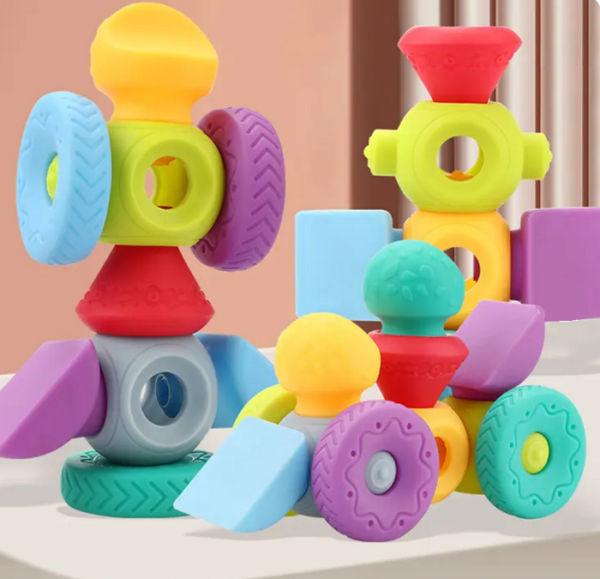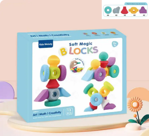 Παιχνίδι κατασκευών DIY με πολύχρωμα τουβλάκια από ειδικό μαλακό καουτσούκ, μη τοξικό, σε διάφορα γεωμετρικά σχήματα για απίθανες δημιουργίες.