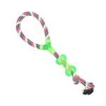 Παιχνίδι σκύλου σχοινί με κόκκαλο μασητικό, από ανθεκτικό, μη τοξικό πολυεστέρα, ιδανικό για παιχνίδια τραβήγματος/αντίστασης ενώ παράλληλα βοηθά στην υγιεινή στόματος του σκύλου σας καθώς καθαρίζει ήπια και απασχολεί τα δόντια του. Μήκος: 40cm.