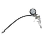 Πιστόλι φουσκώματος ελαστικών με αναλογικό μετρητή πίεσης. Η συσκευασία περιλαμβάνει προσαρμογέα για σύνδεση στη βαλβίδα του ελαστικού. Η φούσκωση ελέγχεται χειροκίνητα, ξεκινώντας μόλις ο μετρητής πίεσης δείξει θετική πίεση στο ελαστικό. Η λαβή διαθέτει βαλβίδα απαγωγής για μείωση της πίεσης του ελαστικού. Ο αναλογικός μετρητής μετράει την πίεση μέχρι 16 bar.