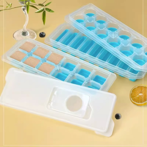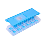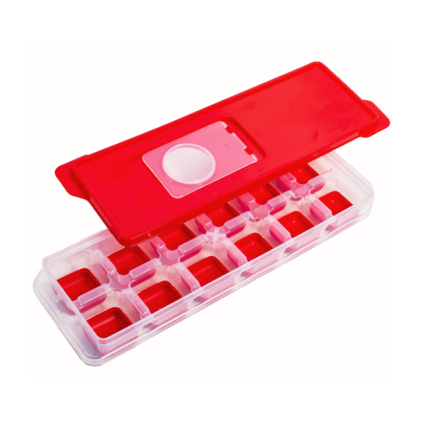Πλαστική παγοθήκη 12 θέσεων τετράγωνα παγάκια. Κατασκευασμένη από ανθεκτικό στη χρήση υλικό. Διαθέτει καπάκι ώστε να μην έρχεται σε επαφή με φαγώσιμα στην κατάψυξη αλλά και για να αποφεύγονται τυχόν διαρροές κατά το γέμισμα.