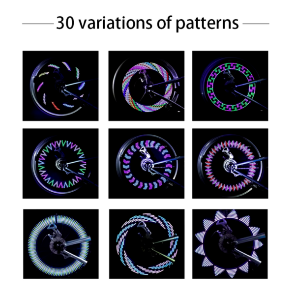 Προβολέας φωτισμού ζάντας ποδηλάτου που δημιουργεί εντυπωσιακά σχέδια φωτισμού κατά την κίνηση, με 30 διαφορετικά πολύχρωμα εφέ.